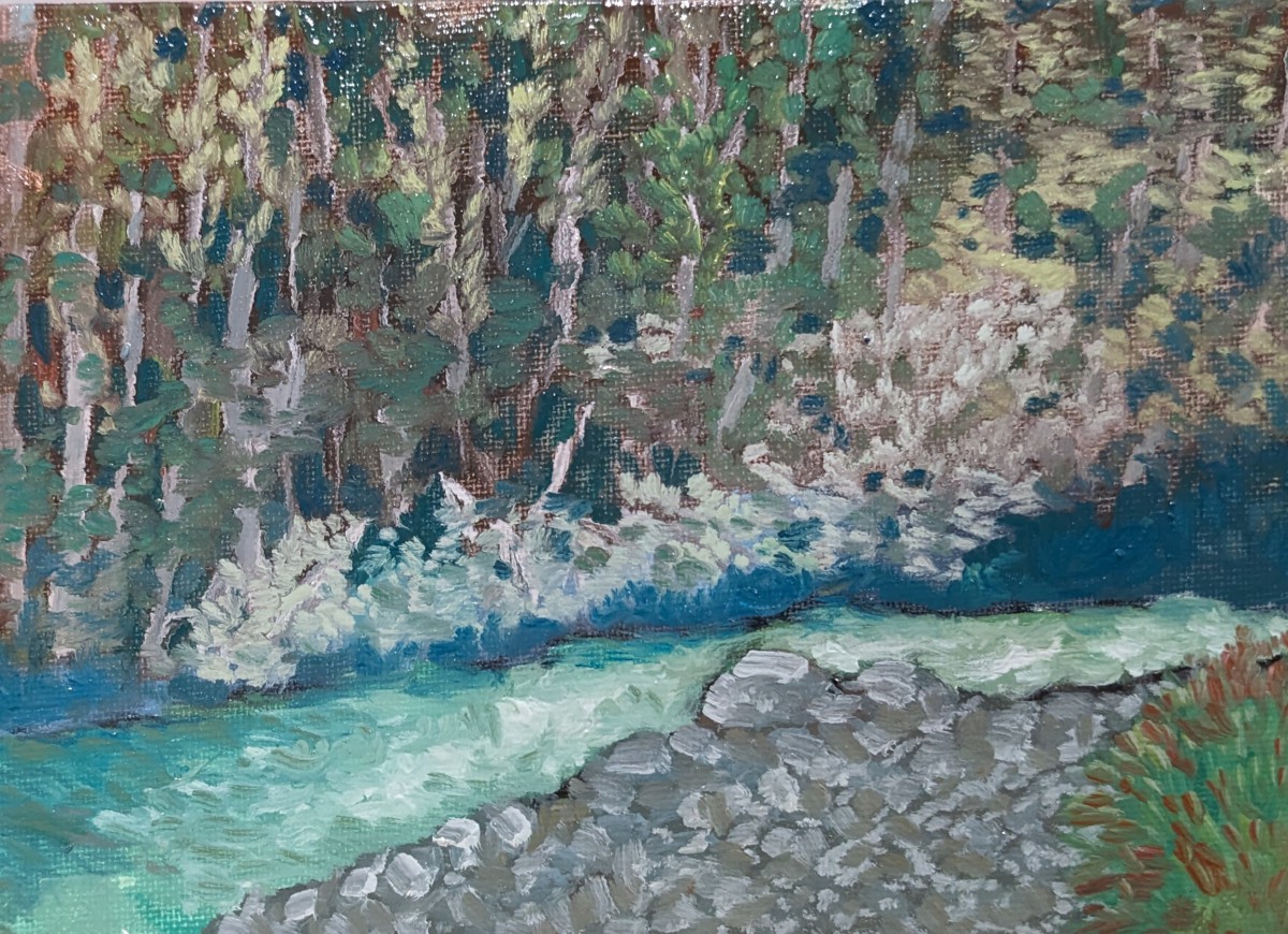 Wilder Lainbach, 2025, Öl auf Leinwand (Plein-air-Malerei), 10,5 x 15 cm